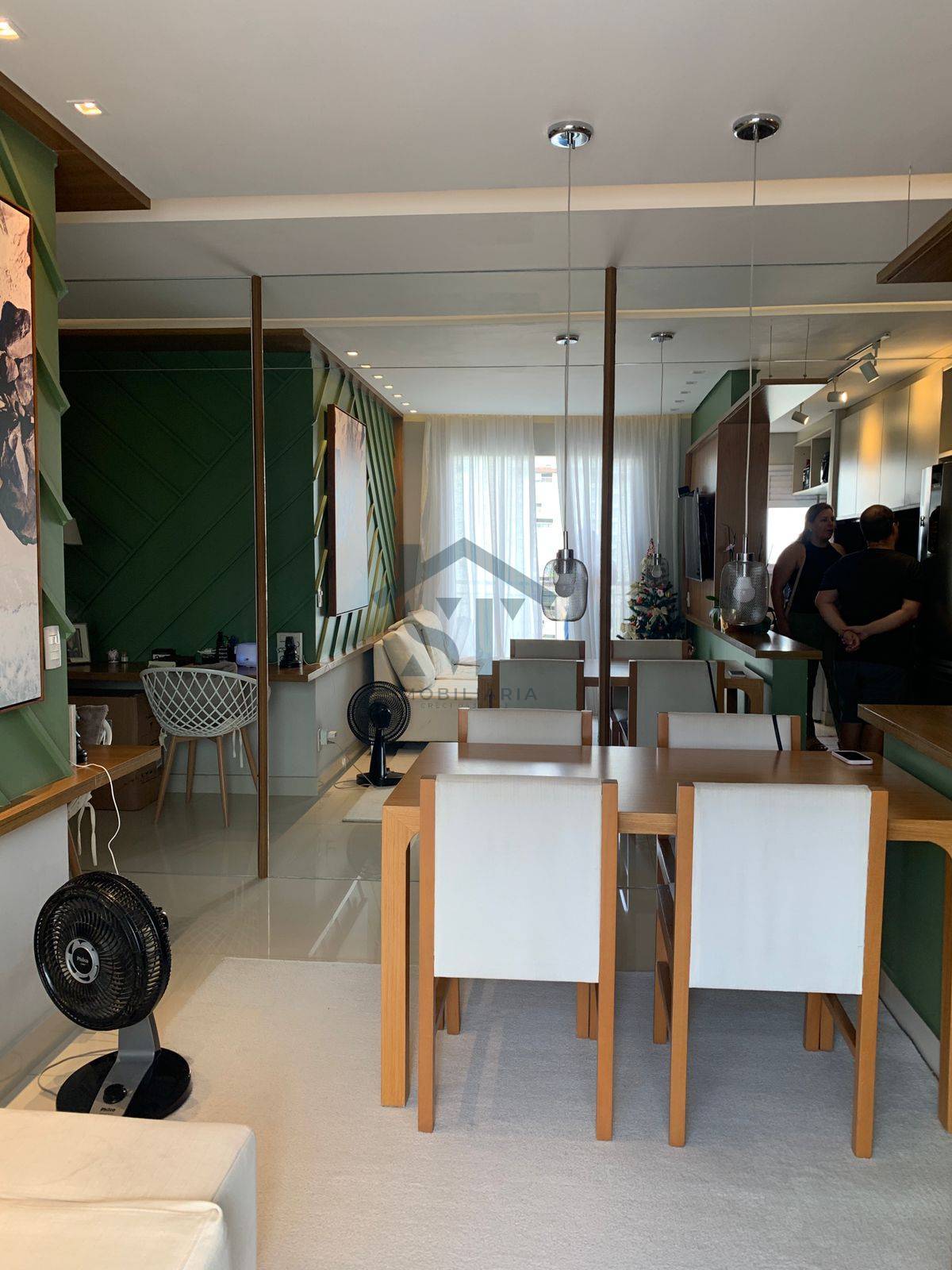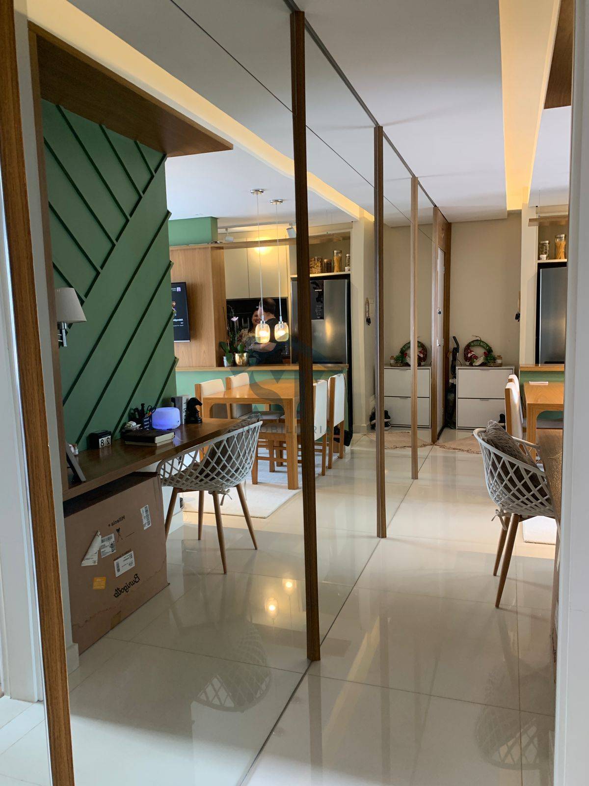 O imóvel dispõe de dois dormitórios, sendo uma suíte espaçosa e confortável, garantindo privacidade e bem-estar. O corredor conta com um amplo espelho, que amplia a sensação de espaço e agrega ainda mais charme ao ambiente.