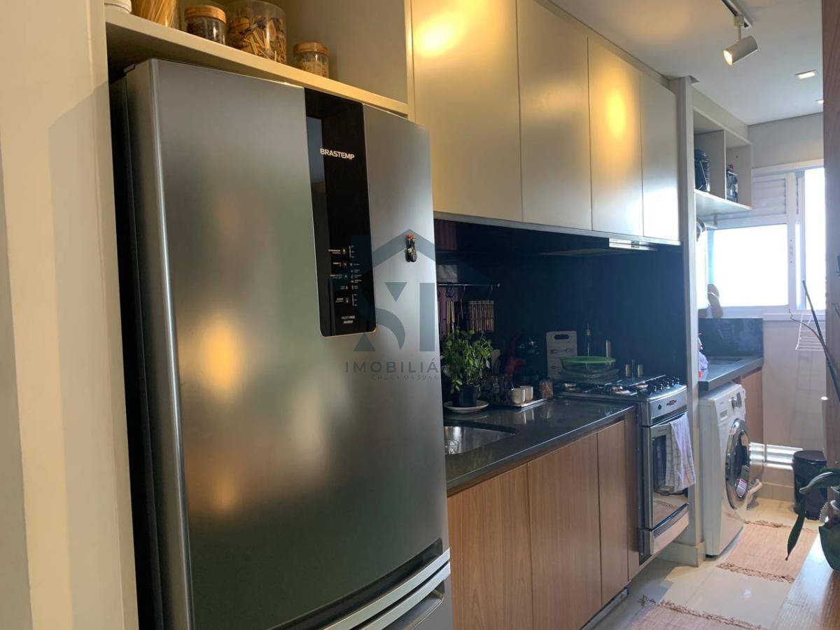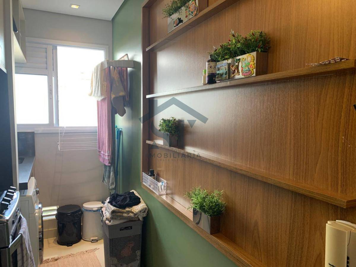 A cozinha planejada é um dos grandes diferenciais, equipada com armários sob medida e um layout inteligente, ideal para quem busca praticidade sem abrir mão da organização. Ao lado, uma lavanderia funcional completa a área de serviços.