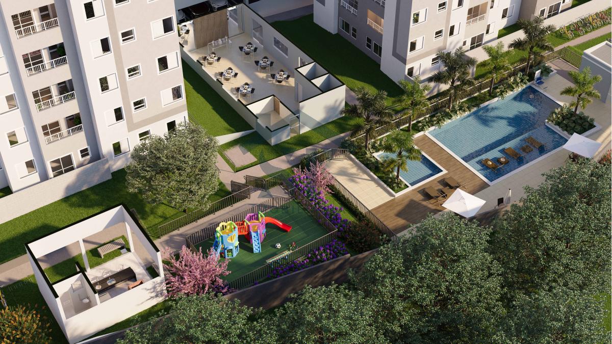 São apartamentos de 2 quartos com varanda e a opção de área privativa no térreo, além do conforto de possuir vaga de estacionamento coberta (opcional). A área de lazer é o ponto alto deste empreendimento: com tem pet place para os bichinhos, piscinas adulto e infantil, playground, salão de festas, churrasqueira e espaço gourmet para toda família. Para quem deseja relaxar, temos um espaço exclusivo com gazebo e redário.