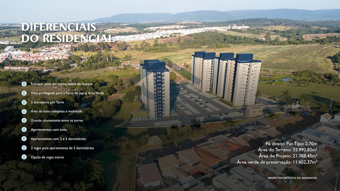 Este condomínio vertical proporciona conforto e lazer em meio à natureza, a poucos minutos do centro de Itupeva. Suas instalações incluem piscina com prainha, quadra de esportes na areia, churrasqueiras, playground, salão de festas, jogos, TV, academia, espaço pet e até infraestrutura para um mini mercado. Vagas privadas para visitantes e prestadores de serviço, portaria com segurança e 1 ou 2 vagas privadas para cada apartamento garantem comodidade.