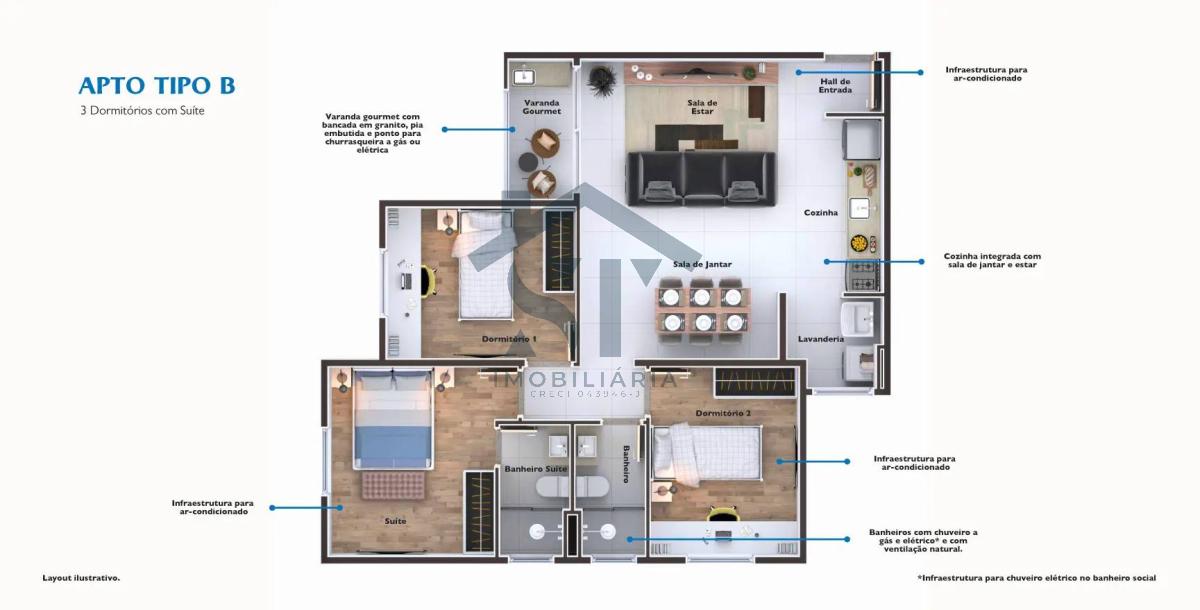 • 3 Dormitórios com suíte