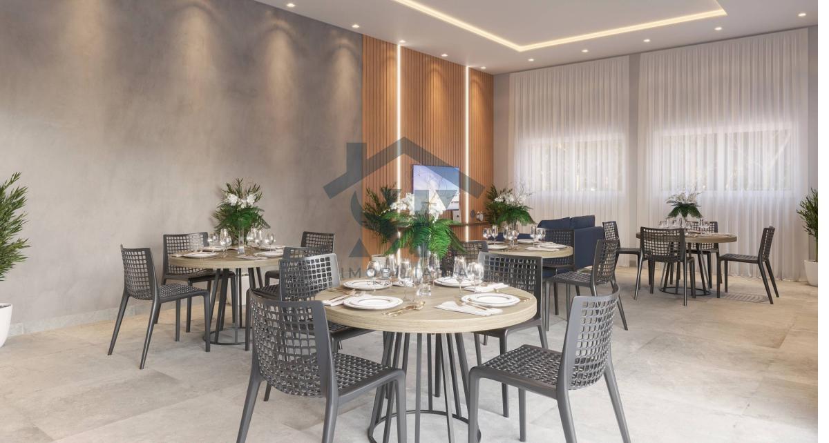 Uma cozinha integrada às áreas de estar e jantar, infraestrutura para ar-condicionado, revestimento de piso em áreas-chave como banheiro, cozinha e lavanderia, além de uma área gourmet equipada com pia e bancada de granito. Opção de ampliação da sala através da integração com um terceiro quarto.
